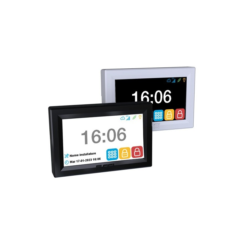 La tastiera touch-screen Alien/S consente di gestire il sistema di sicurezza con pochi semplici tocchi: tramite il display di controllo personalizzabile è possibile inserire, disinserire o parzializzare l'impianto di allarme, attivare o disattivare scenari e funzioni domotiche.