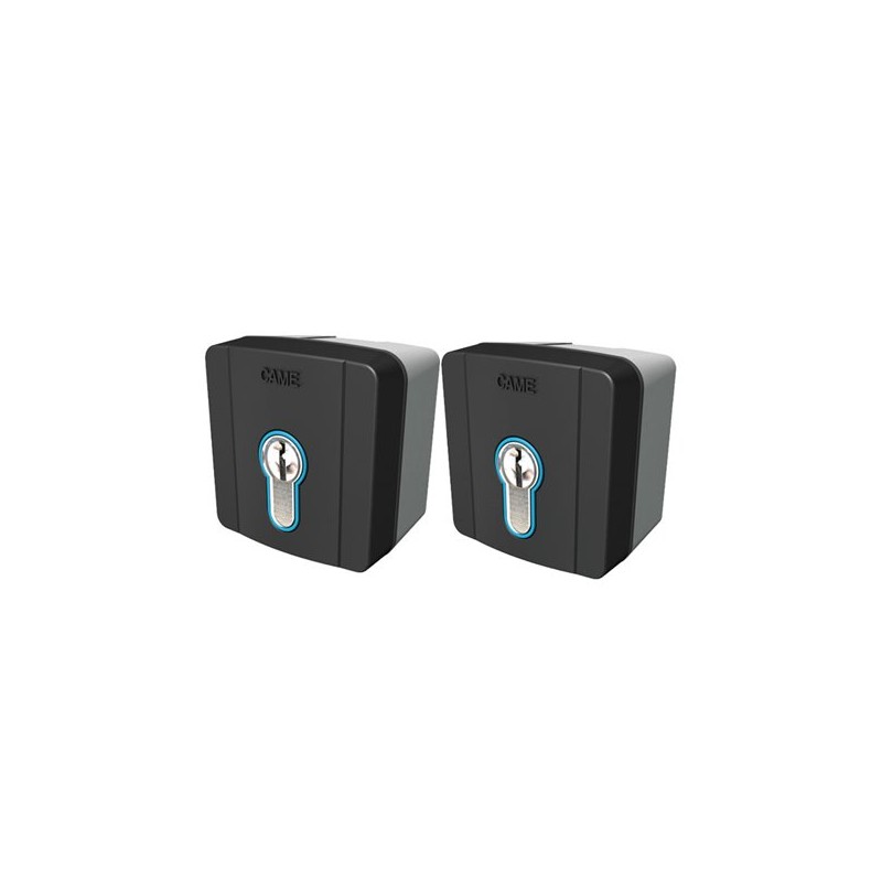 SELD1K01 Kit composto da due selettori a chiave da esterno con retroilluminazione blu e cilindro serratura DIN. Colore grigio, RAL7024.
