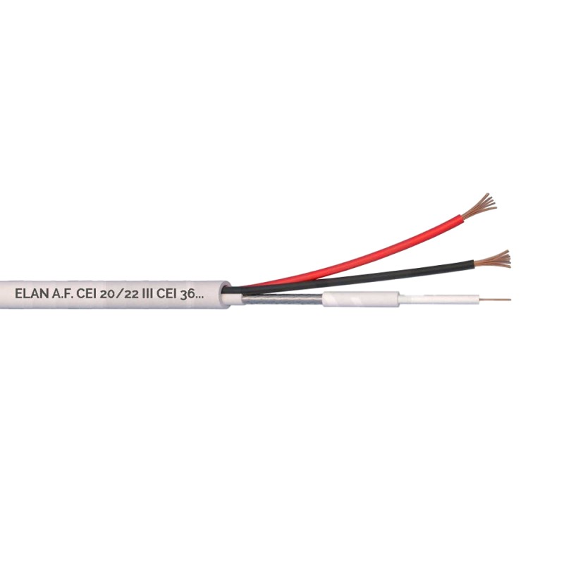 Cavo composto video coassiale microcoax 75Ω + 2x0,50mm² alimentazione per impianti di videosorveglianza matassa 100MT Elan - sku 082251