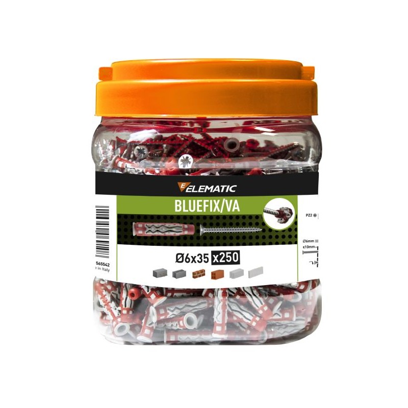 Barattolo Box Elematic con 250 Tasselli Bluefix/va 6X35 565542