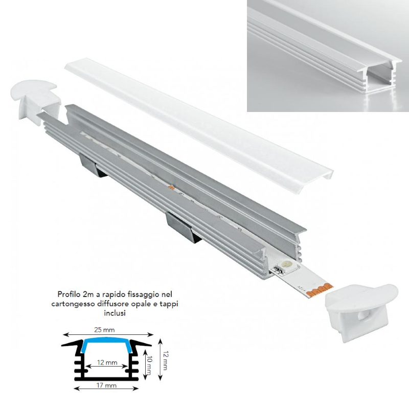 Questo profilo si adatta a diverse applicazioni decorative, ad esempio per la creazione di linee di luce diffusa, è ideale per l'illuminazione diffusa di negozi, uffici, vetrine, gioielleria, scale, scaffali, mobili, cucine ecc…