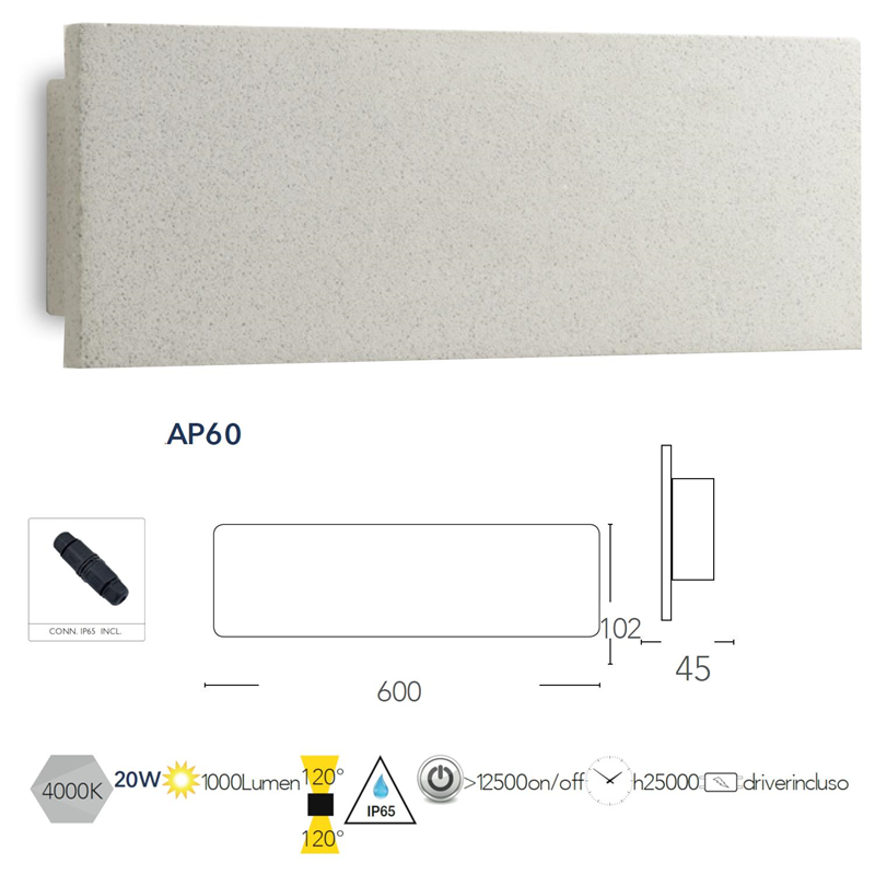 La plafoniera modello PARKER è una lampada rettangolare per montanggio a parete in cemento bianco, a biemissione luce naturale 4000K.