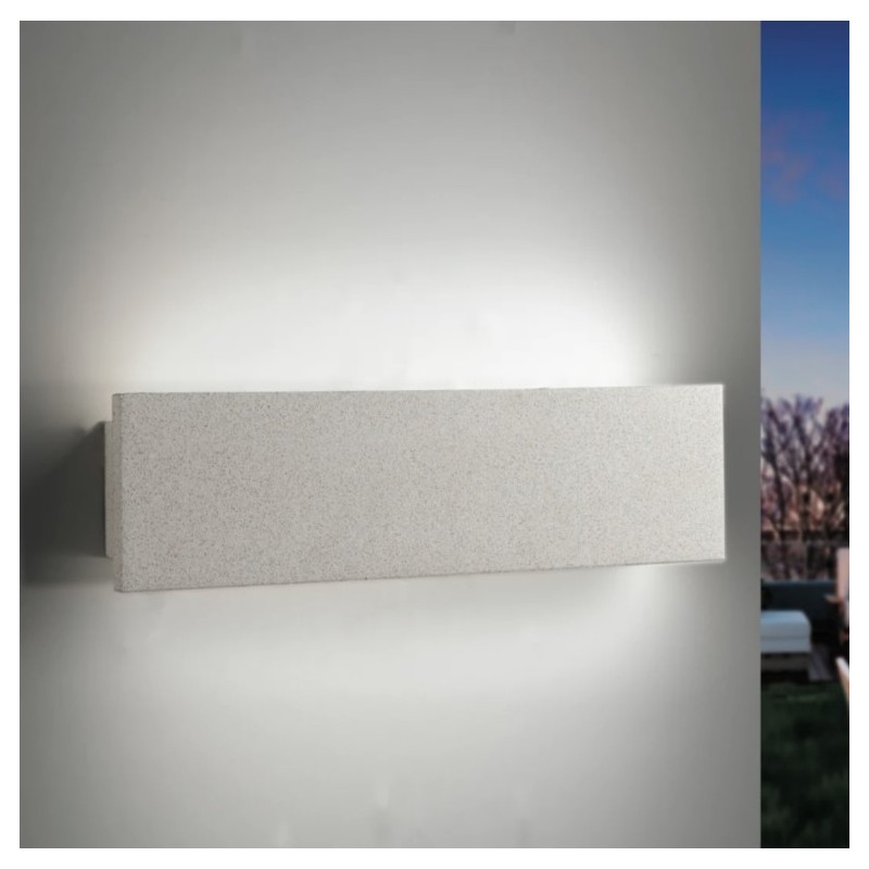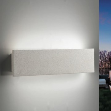 BOXTER é un applique da esterno realizzato in alluminio con doppio fascio luminoso verso l'alto e verso il basso.