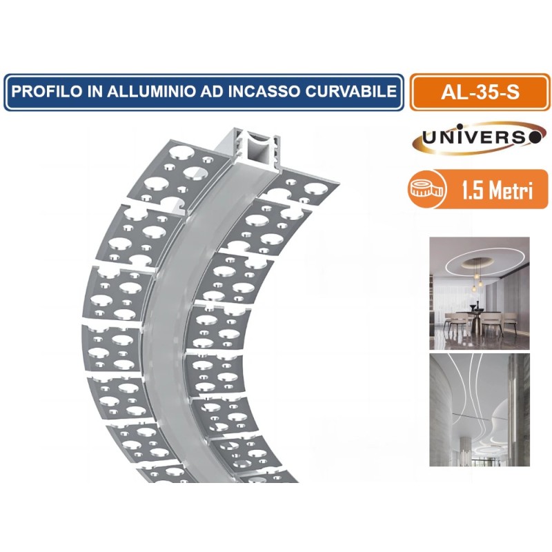 PROFILO IN ALLUMINIO FLESSIBILE E CURVABILE AD INCASSO da 3 METRI