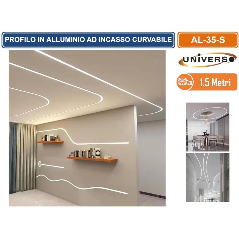 profilo in alluminio flessibile e curvabile ad incasso da 3 metri