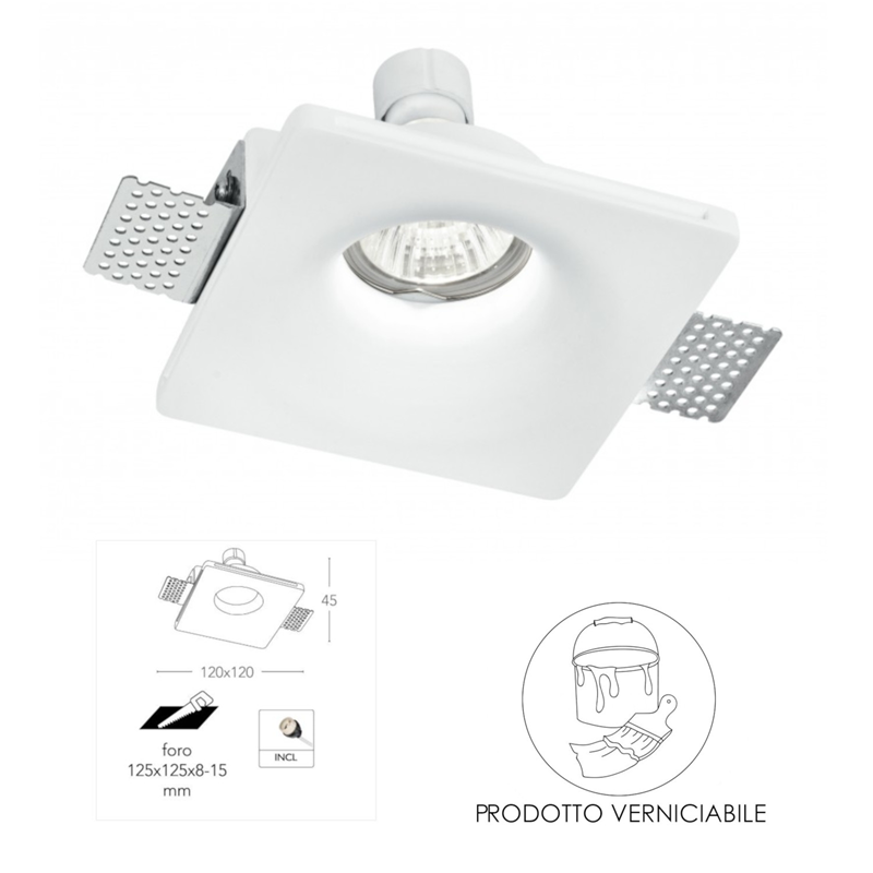 I faretti in gesso sono interamente verniciabili dello stesso colore della parete o soffitto.