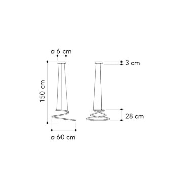 Lampadario a sospensione con struttura in alluminio e diffusore in silicone. Disponibile in vari colori. Luce a LED integrato da 60W, 6900 Lumen. Interruttore interno per la personalizzazione dei Kelvin da 3000K (luce calda) a 6000K (luce fredda).
