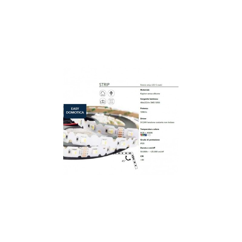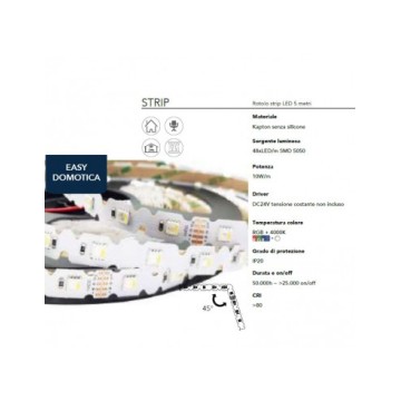 Striscia Led Pieghevole 48Led/m 10w/m RGBW DC24V Bobina Da 5 mt IP20