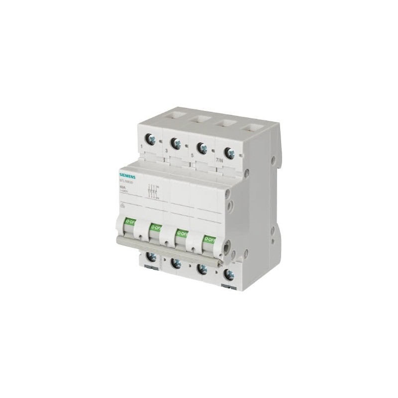 interruttore OFF 63A a 3 poli+NInterruttori ON/OFF per montaggio su guida DIN per il comando di impianti elettrici. Gli Interruttori ON/OFF 5TL1 sono impiegati per il comando di luci, motori ed altre apparecchiature elettriche. Le correnti nominali vanno a 32 A a 125 A. Le varianti di apparecchio 5TL1 sono impiegabili inoltre come sezionatori sottocarico secondo EN 60947-1. Gli apparecchi possono essere utilizzati secondo EN 60204-1 come interruttori principali per il sezionamento o la messa fuori tensione di impianti. Sia che si tratti di esigenze applicative nell'infrastruttura o nell'industria - Siemens offre apparecchi d manovra magnetotermici per qualsiasi campo d'impiego. Grazie al nuovo design l'interruttore ON/OF 5TL1 puÒ essere perfettamente integrato dal punto di vista ottico nella serie degli interruttori differenziali e degli interruttori magnetotermici. Gli apparecchi di manovra di Siemens si contraddistinguono soprattutto per le seguenti caratteristiche: 1 Elevata sicurezza di funzionamento e disponibilità degli impianti grazie all'inserzione e alla disinserzione separata del circuito interessato.