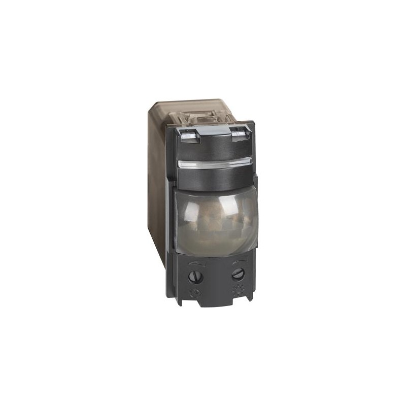 Green Switch, Interruttore con sensore di movimento a raggi infrarossi passivi adatto per tutti i tipi di carico comprese lampade LED - 3 fili - circuito crepuscolare a soglia variabile con possibilità di esclusione - circuito di temporizzazione per ritardo spegnimento regolabile da 30 secondi a 10 minuti - alimentazione 230 Va.c. - 1 modulo