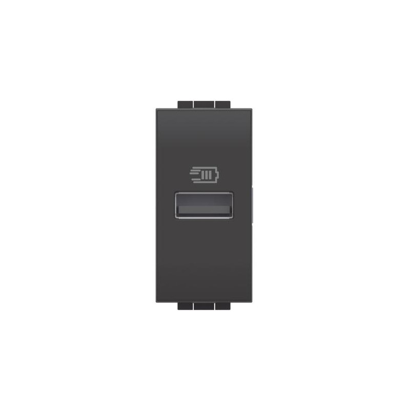 Caricatore USB 5 Vdc da utilizzare solo per ricaricare dispositivi elettronici fino a 1500mA come telefoni cellulari, smartphone, tablet e simili - 230 Va.c. alimentatore - 1 modulo - Antracite