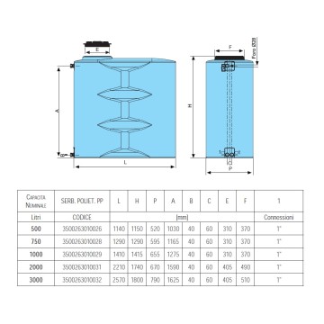SERBATOI DI POLIETILENE PARALLELEPIPEDO | 1000 LT | CORDIVARI =litri 1000- h 1415x p 65,5x l1410