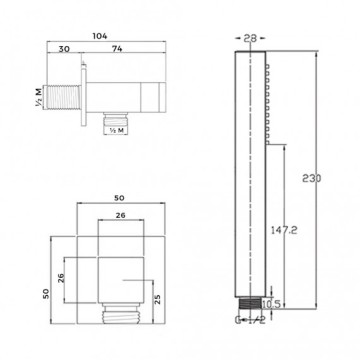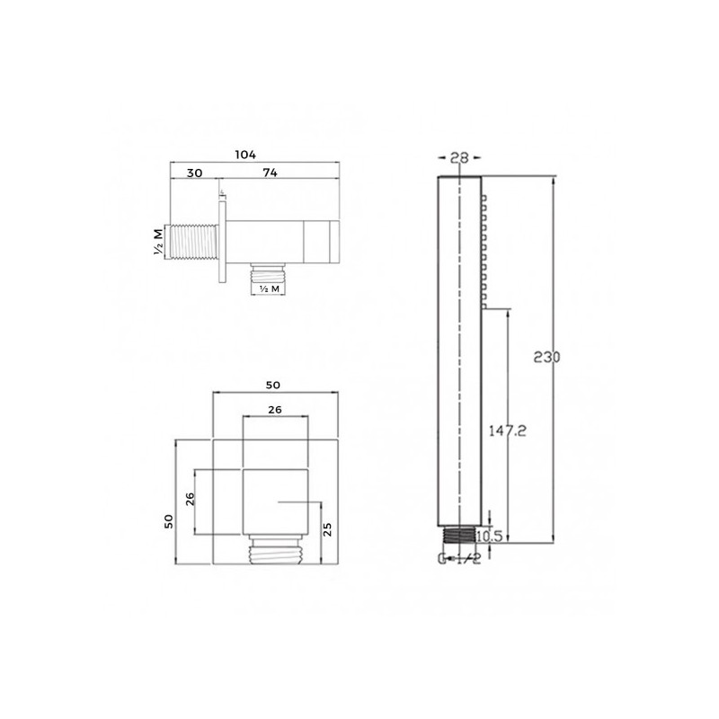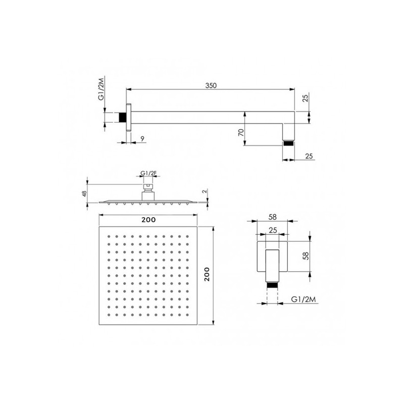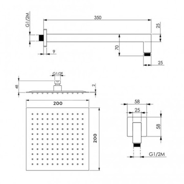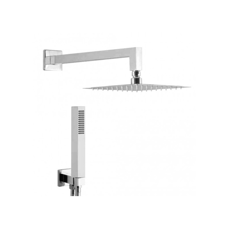 Set doccia Quadro con braccio da 35 cm soffione da 25 cm e presa acqua in ottone con doccino