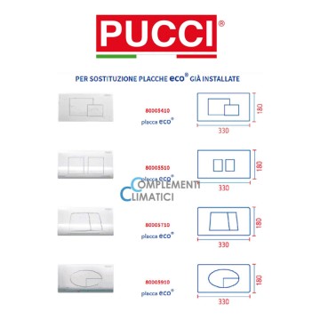 Rinnova placca di comando cromo Pucci Eco 80179560 per risciacquo a due quantità sostituisce il vecchio modello di placca Eco fino al 2010. Sostituisce le placche articolo 80005710, 80005910, 80005410, 802005510.